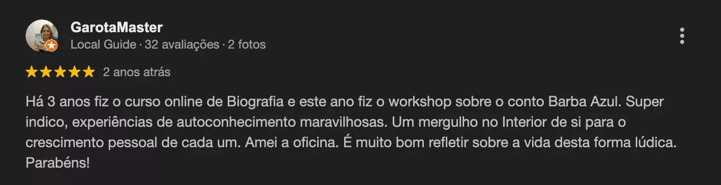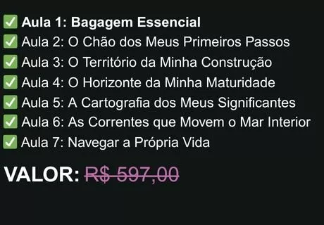 O trabalho é de reconhecimento de padrões e leitura biográfica... você olha para sua história de forma panorâmica, identificando fios condutores, símbolos, escolhas recorrentes. Se em algum momento você perceber que precisa de suporte terapêutico mais profundo, o curso inclusive te ajuda a identificar isso e te encoraja a buscar ajuda profissional adequada.